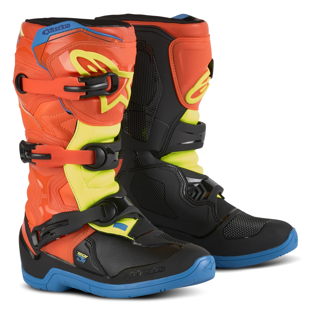Alpinestars Youth Tech 3S Motocross Boots Orange Blue Yellow
